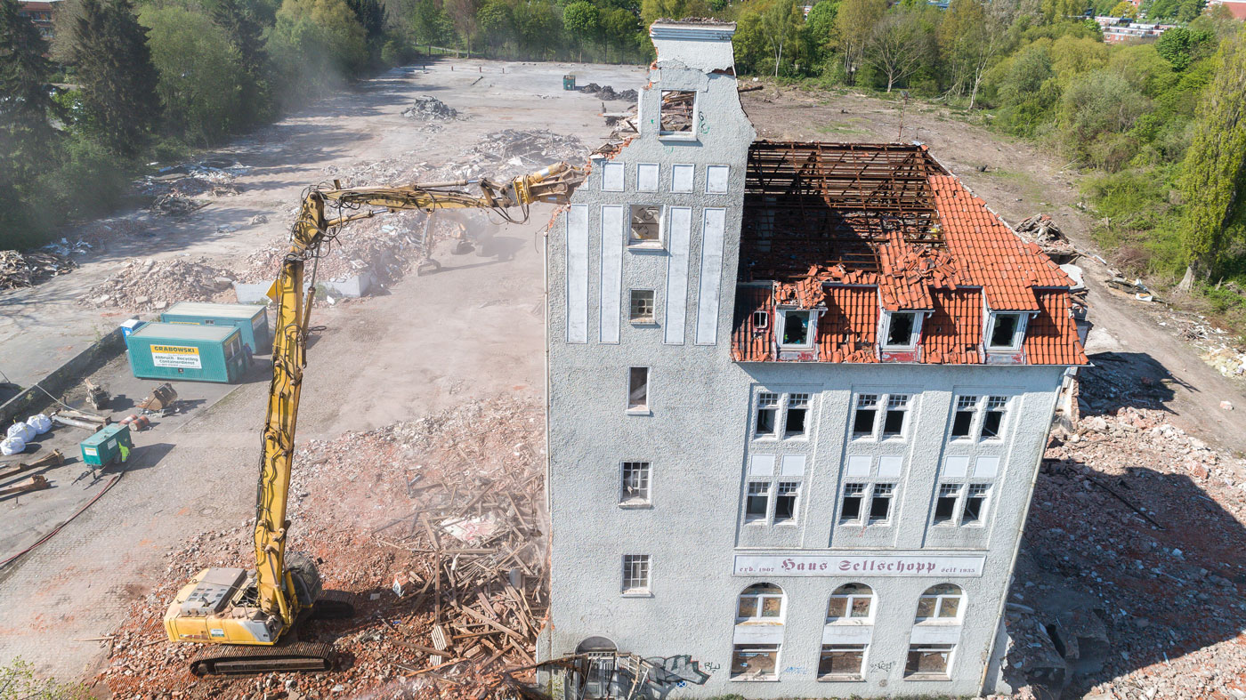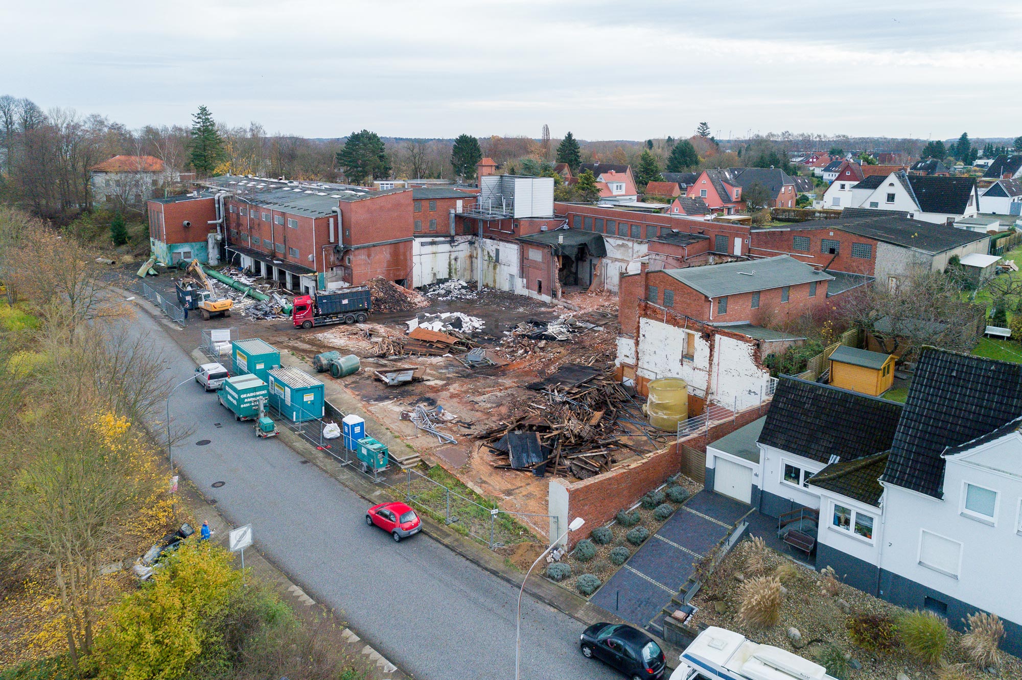 17.11.2017 | Lübeck, Ratzeburger Allee/Fahlenkampsweg, Abbruch "Bürogebäude, Garagenhof, Einfamilienhaus"